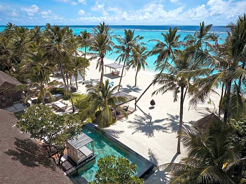 This offer includes: Free Shared Transfer, 3 Course Dinner at Reethi Earth and Rabarbaro restaurants, excluding beverage or Dinner Credit of USD 80 per adult per day. Each one-bedroom villa features two queen beds, and a bathroom with an oversize terrazzo bath and a walk-in rain and jet shower. Wake up to the sounds of gentle waves ebbing and flowing mere yards away from your bright and airy beachfront villa in the Maldives. Step out to your outdoor wooden terrace and onto the sand, past your private sun loungers and refreshing outdoor shower, and onto your own beachfront. Your host and villa valet will discreetly tend to your every need while you ease yourself into island life.