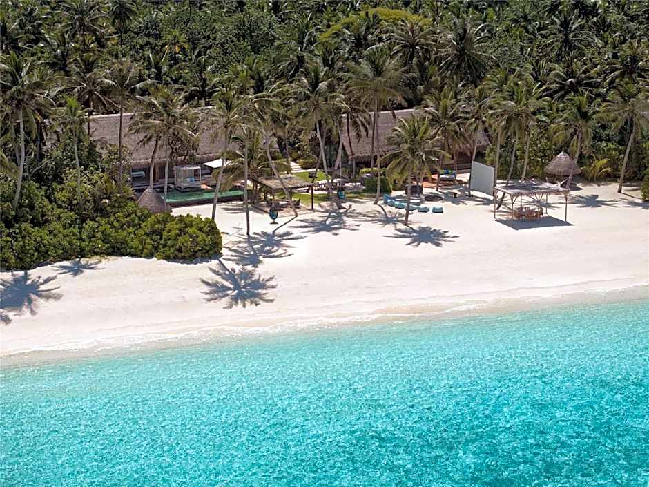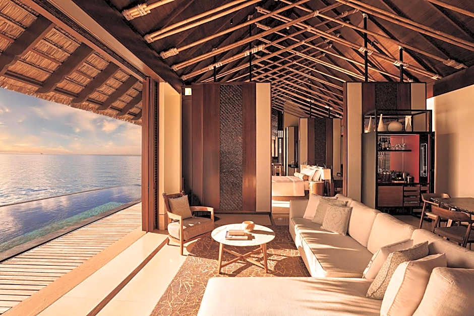 Your exclusive residence combines a traditional Maldivian aesthetic with the sheer beauty of its brilliantly blue ocean backdrop, for an extravagant beach home that will capture your imagination. Boasting the island’s most serene beach, One&Only Reethi Rah's breathtaking 2,056-square-yard Grand Residence is both majestic and secluded, accessible only by a private road. Three bedrooms across two separate villas, multiple living and dining spaces and oversize bathrooms give you and your companions plenty of room to stretch out. One villa hosts two bedrooms with a king-size bed, and two queen-size beds, respectively. The second villa is a private haven with a king-size master bedroom. Showcasing our Maldives resort’s heritage-inspired architecture, the Grand Residence is exquisitely styled in honey-hued wood and natural stone, with exposed vaulted ceilings across the large Maldives residence. Your personal host is at your service and personal chef available upon request, for a seamless stay. Your exclusive-use outdoor area includes a 50-square-yard infinity pool, cabana and entertaining area with outdoor cinema, with your own stretch of white sands and the ocean mere steps away.